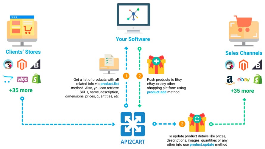 - Pre-Built API Methods: API2Cart provides pre-built methods, such as product.add, product.update, and product.list, saving developers significant time in coding and reducing the risk of errors.
