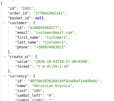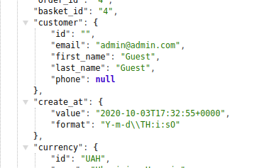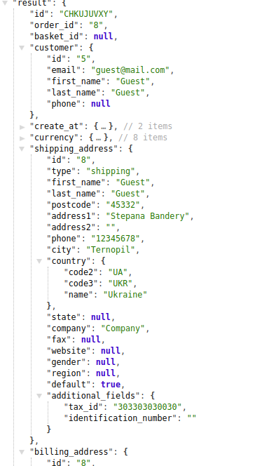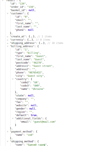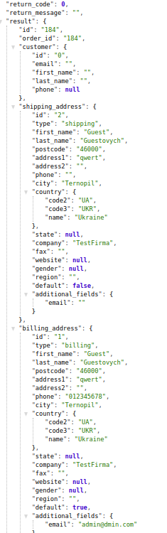 The response of an order created by the guest does not display the customer ID. All information that was filled in when creating an order is displayed in the appropriate containers.