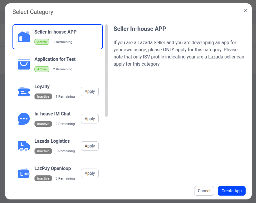Choose the category Seller In-house APP.
