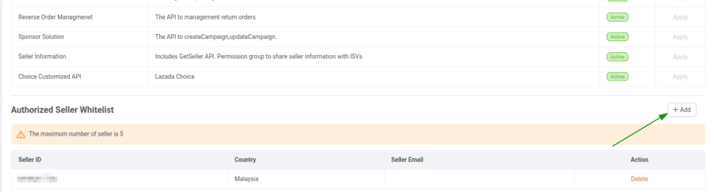 and select the application for which the seller's store was authorized and the region. After clicking Submit, you will get a refresh_token that can be used as the lazada_refresh_token parameter to add the store to API2Cart.