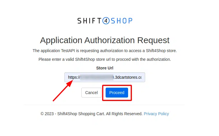 After that, you will be redirected to a page where you will need to specify the URL of the Shift4Shop store.