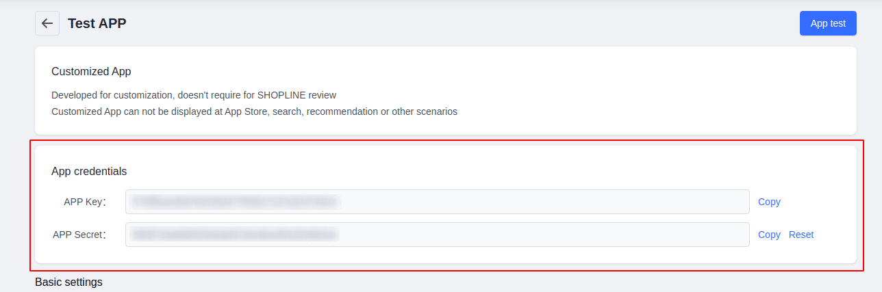 After creating the app, you will receive the shopline_app_key and shopline_app_secret, which you'll use to add to the API2Cart.
