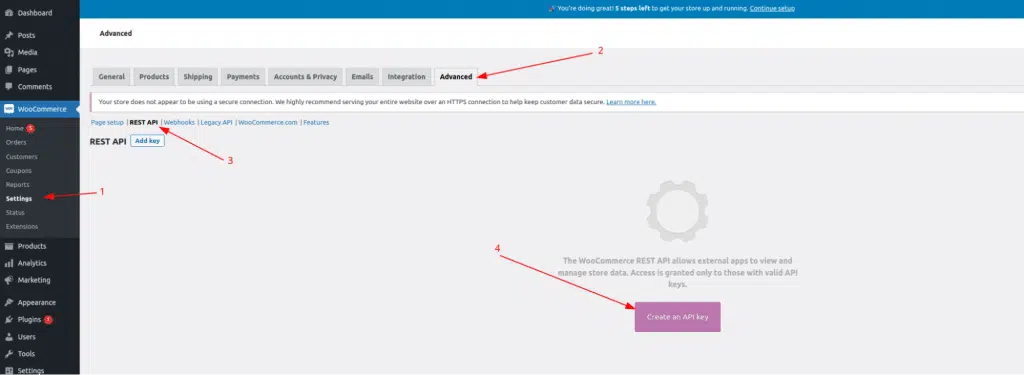 First, you must ensure that the WooCommerce REST API is working. The following conditions must be met: