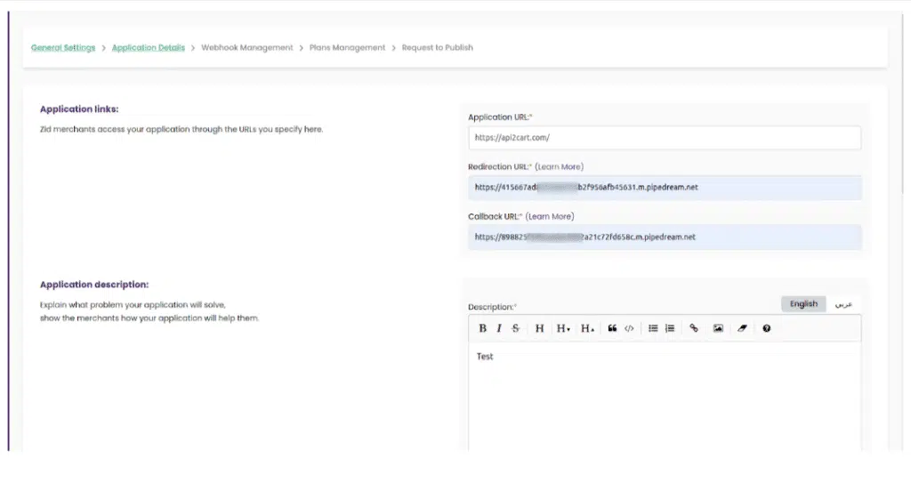 Next, you need to fill in detailed information about the application.